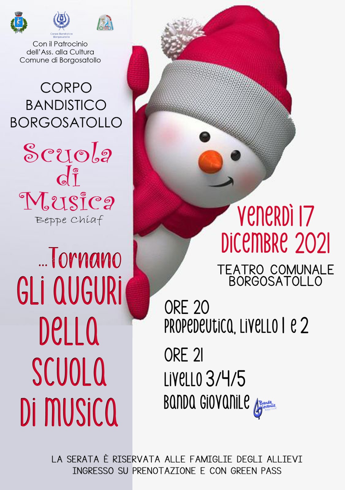 Tornano gli auguri della Scuola di Musica ; si esibiranno tutti gli allievi dalla Propedeutica alla Banda Giovanile "Beppe Chiaf".