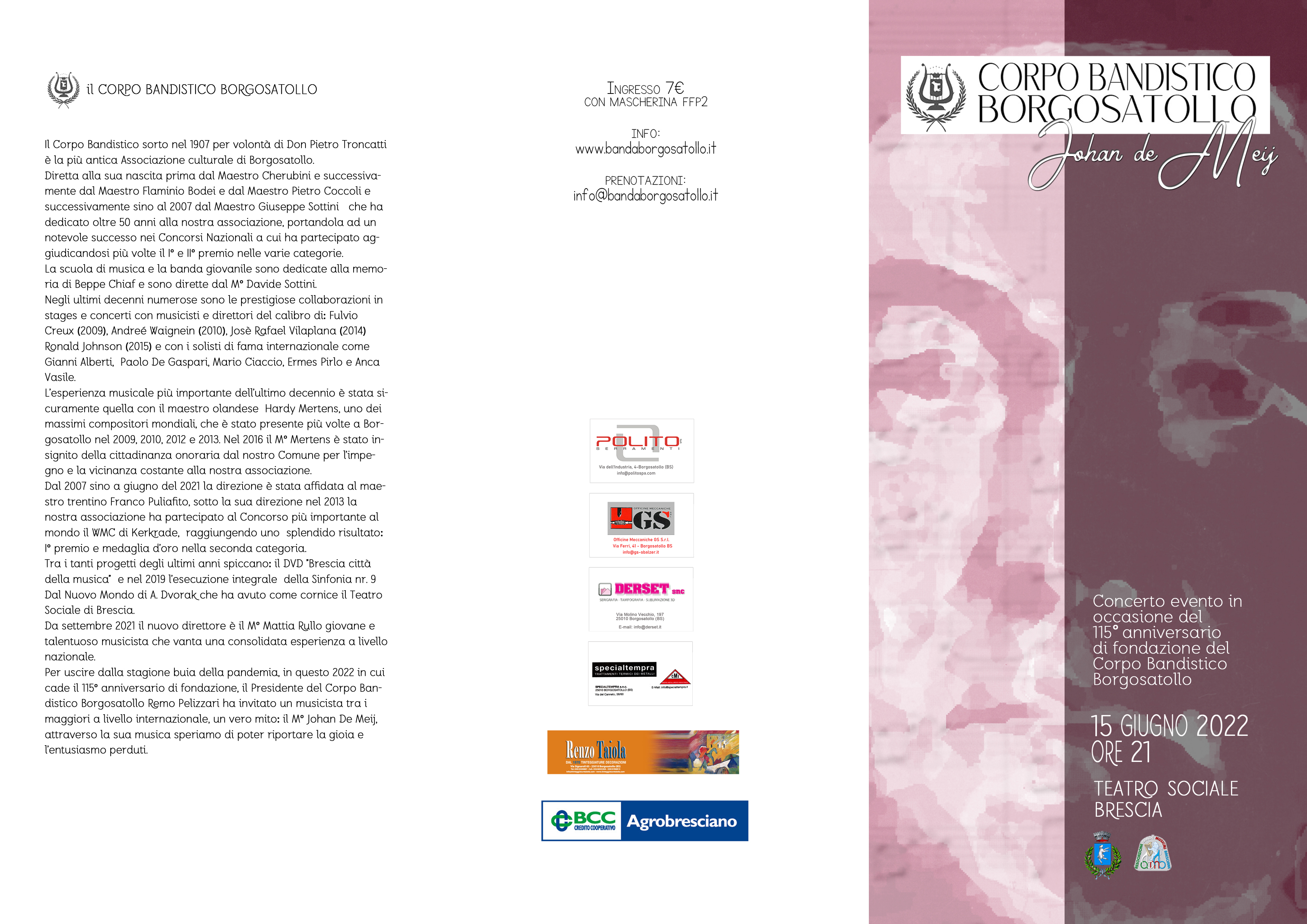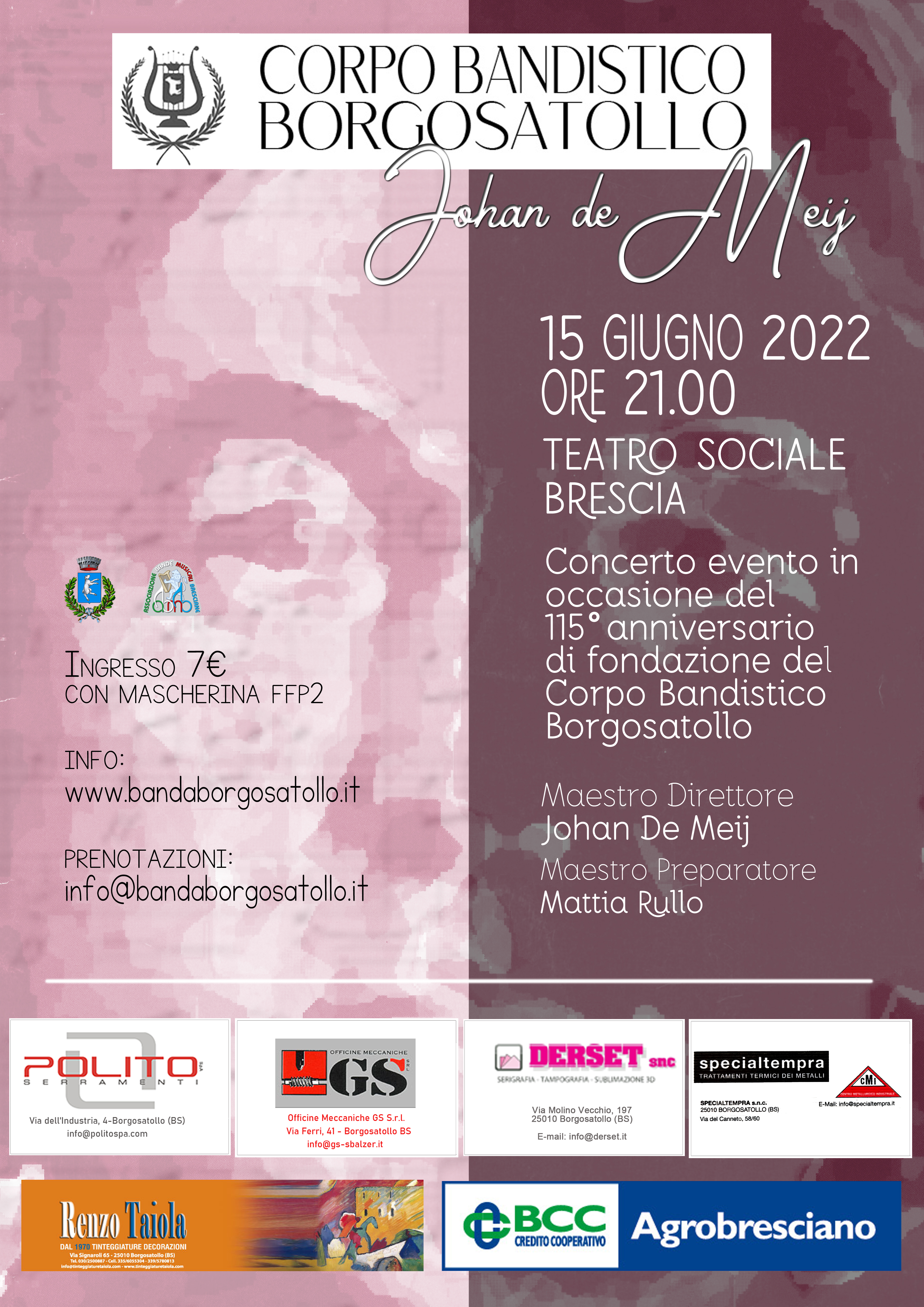 In data 15 giugno il Corpo Bandistico si esibirà al Teatro Sociale di Brescia alle ore 21:00.