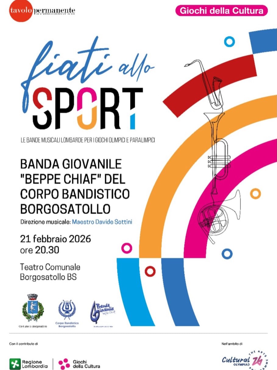 Il giorno 21 febbraio la banda giovanile“Beppe Chiaf” si esibirà con il concerto “Fiati allo sport”.