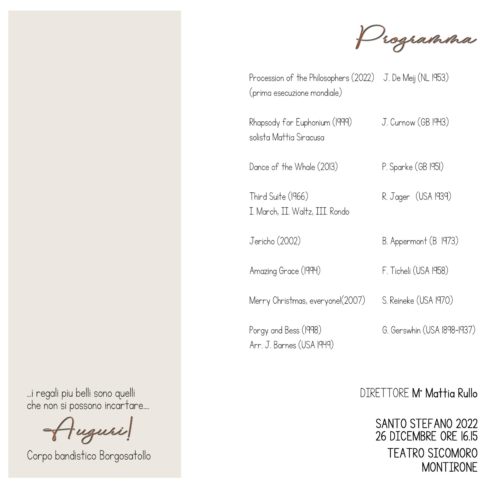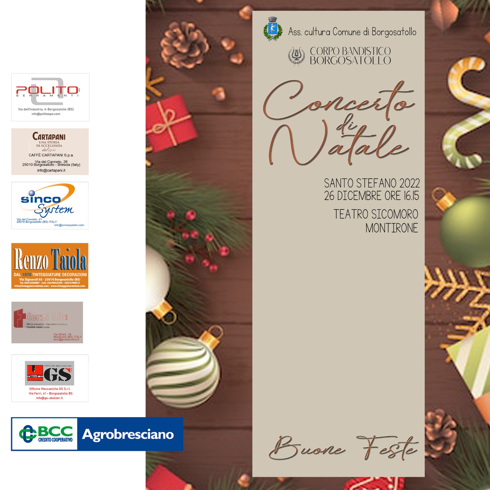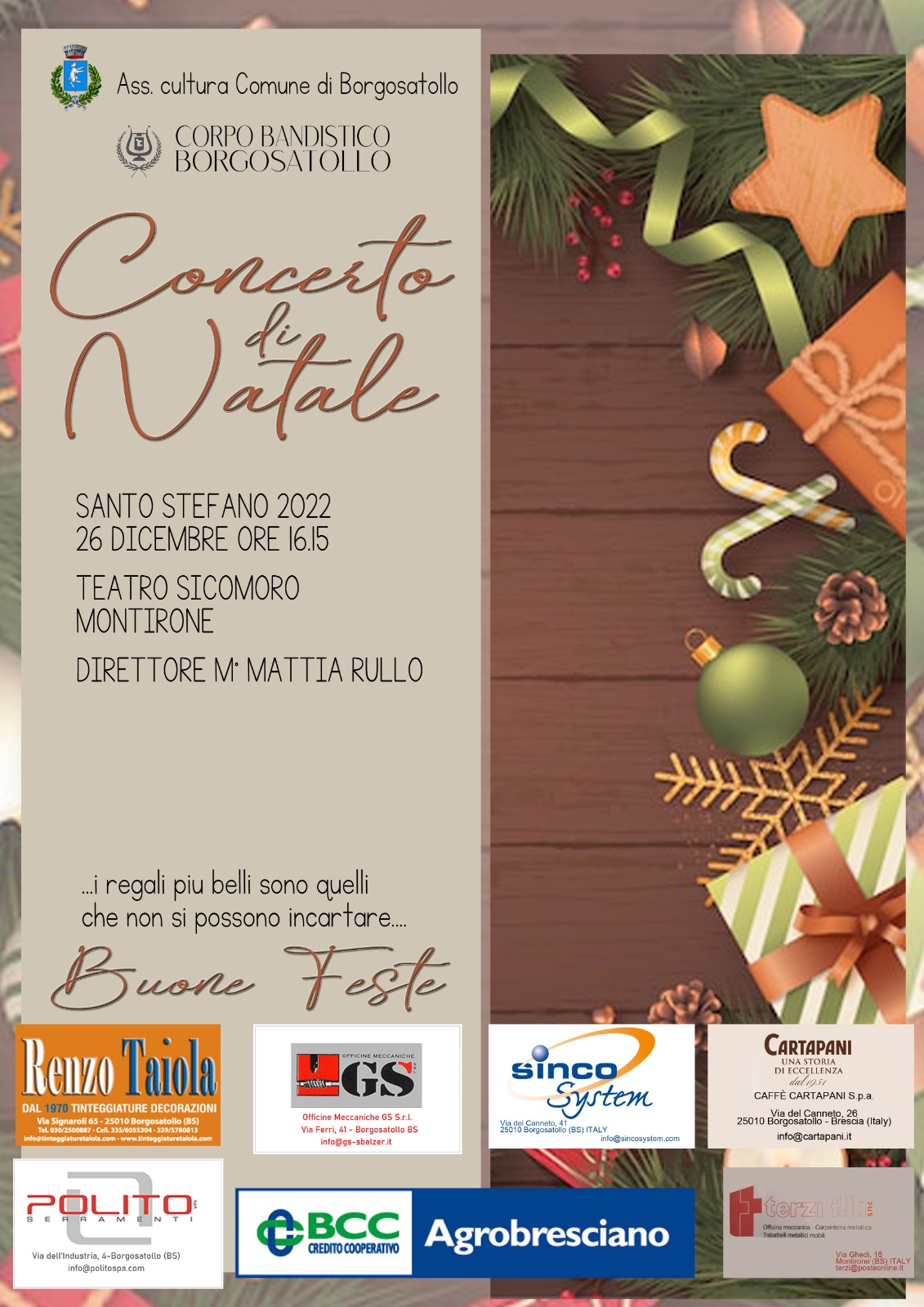 CONCERTO DI NATALE 2022 - 26 Dicembre 2022 - ore 16:15 - Teatro Sicomoro - Montirone