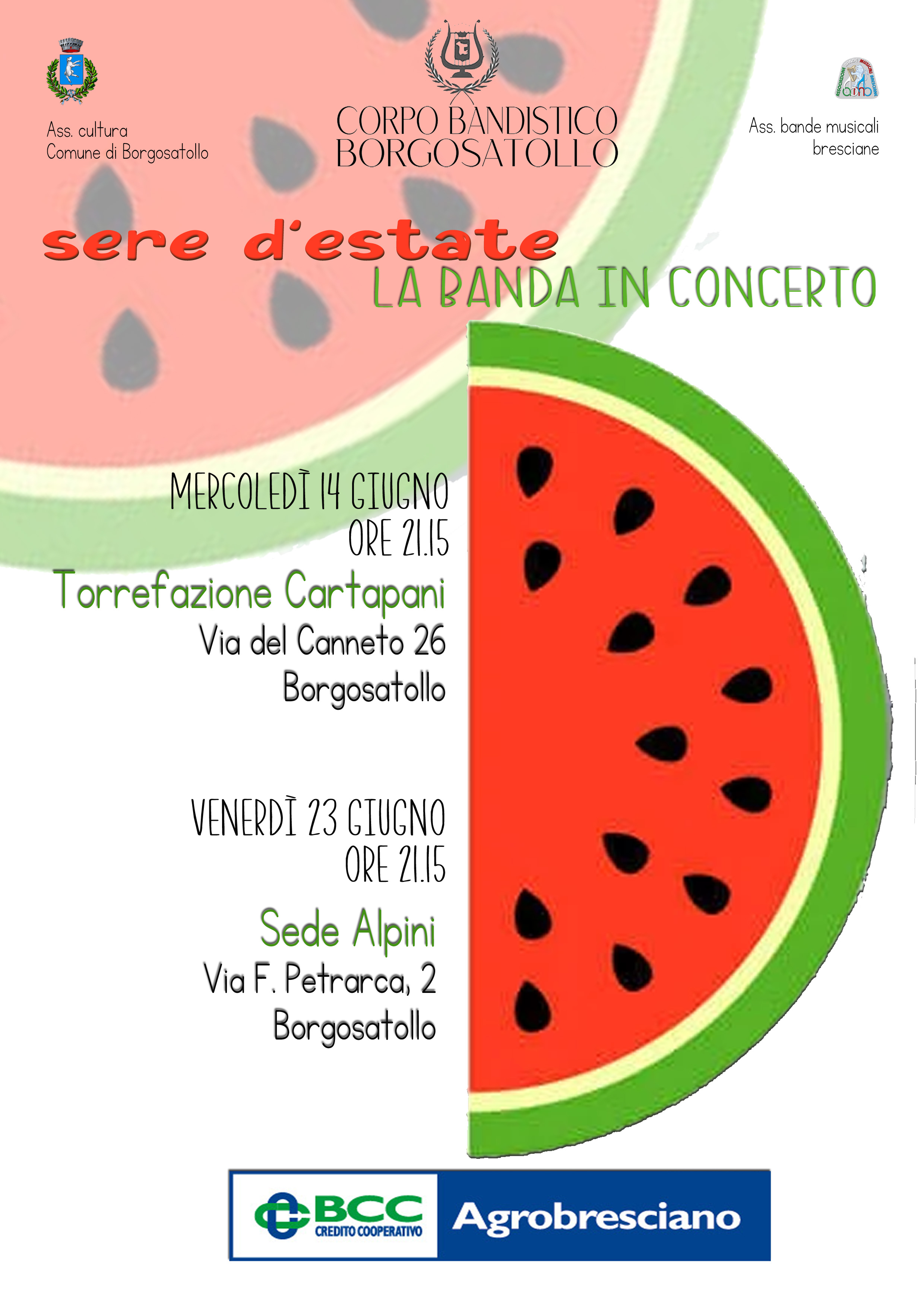Concerti estivi Categoria: Eventi Venerdì 23 Giugno Ore 21:15 Sede Alpini - Borgosatollo Allegati: locandina Tutti gli articoli