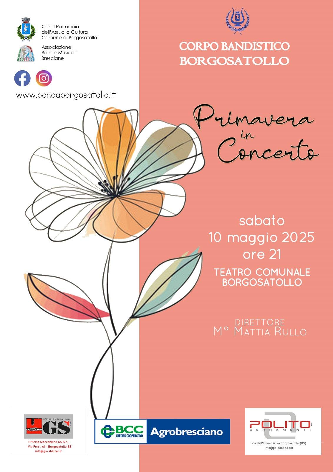 Concerto di Primavera Categoria: Eventi Sabato 10 Maggio Ore 21:00 Teatro Comunale - Borgosatollo Allegati: locandina Tutti gli articoli